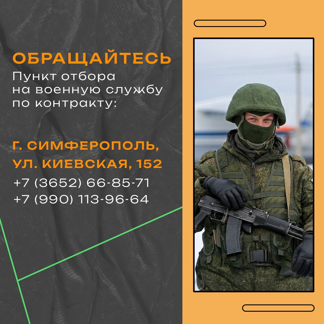 По всем вопросам отбора на военную службу по контракту необходимо обращаться по телефону 117 или +7 (990) 113-96-64