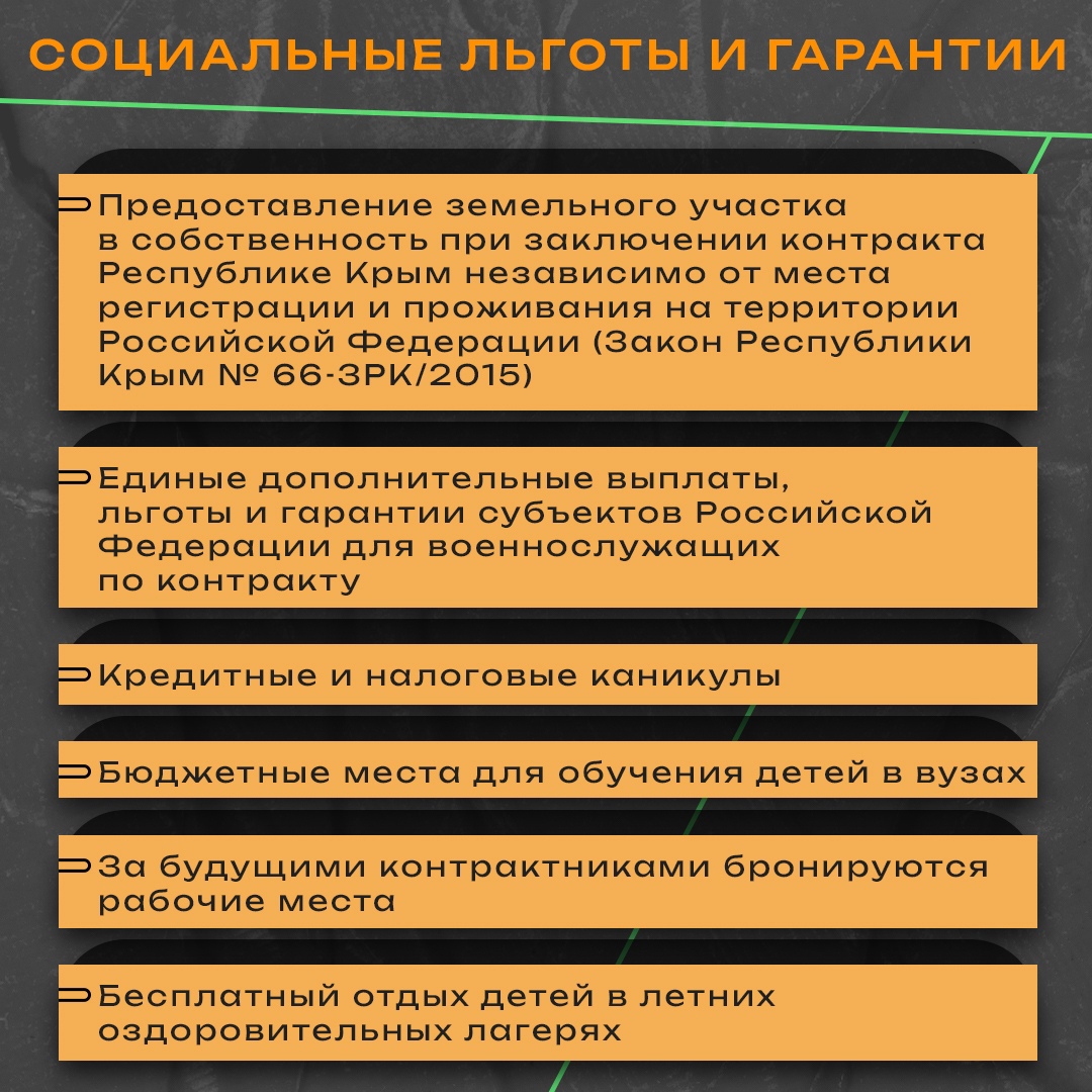 Единовременная выплата при заключении контракта составляет 900 тысяч рублей, в том числе 400 тысяч рублей из федерального бюджета и 500 тысяч рублей из бюджета Республики Крым. Кроме того, за службу в зоне специальной военной операции ежемесячно будет выплачиваться от 210 тысяч рублей.